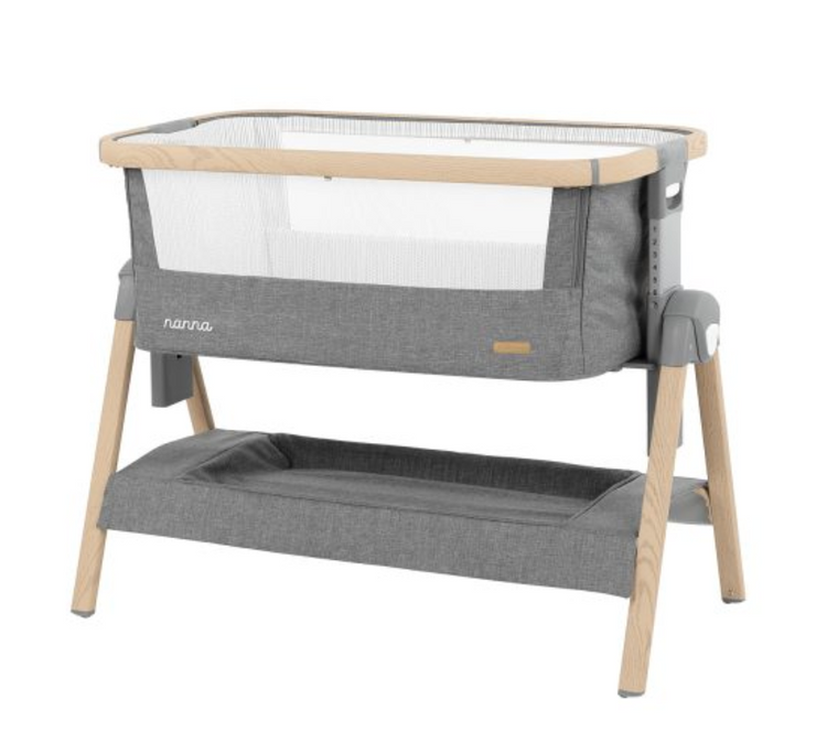 La culla Nanna, facilmente assemblabile in pochi passaggi, può essere utilizzata anche come culla indipendente ed è dotata di zanzariera e una pratica borsa per il trasporto.